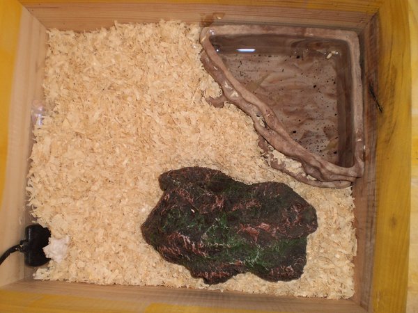os pongo ahi unas fotillos de mi guttata baby y de su terrario provisonal hasta que no crezca :D