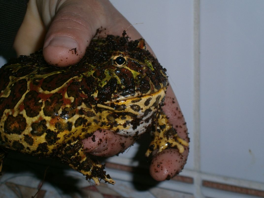 Es un acuario de 75cmx32. Lo bastante grandito para ella, antes la tenia en uno mas pequeño de unos 30 litros pero se le quedaba pequeño ya que les gusta moverse de vez en cuando por hay, es sencillo , le tengo su piscinita pa bañarse o defecar, fibra de coco y un poco de musgo para darle mas humedad.