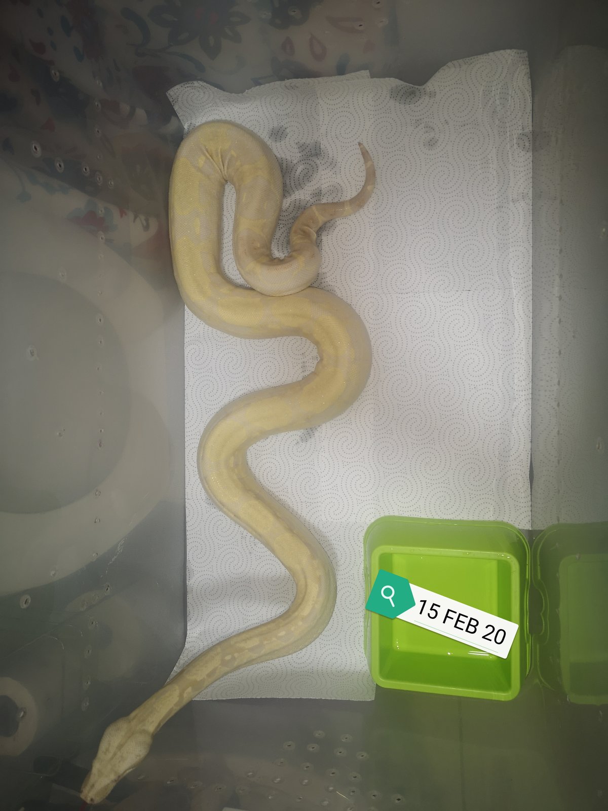 La boa albina, la que supuestamente está preñada, me quedo mucho más alto de lo que pensaba la verdad.