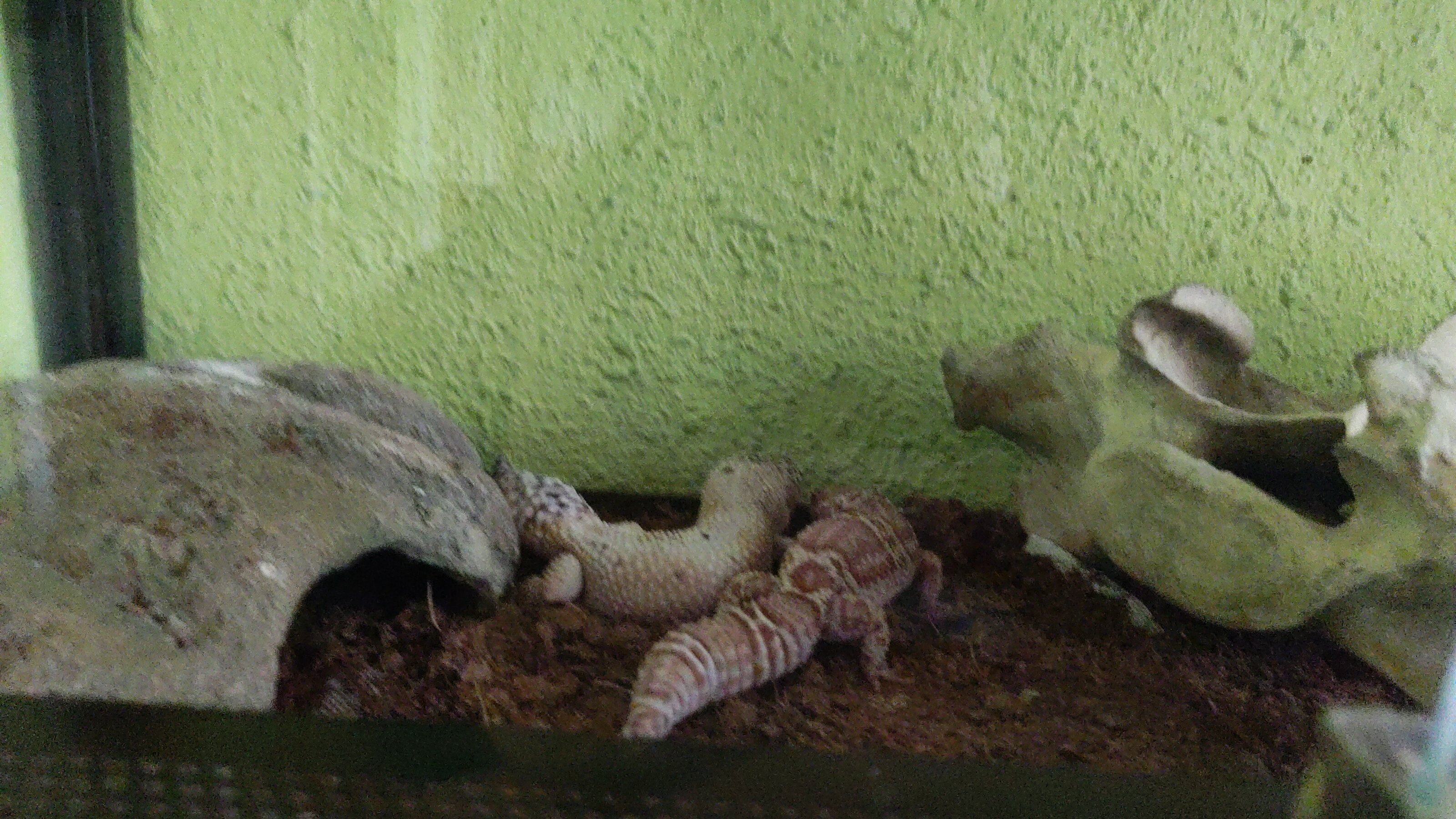 Buenas soy nueva en el mundo de los reptiles y ayer me regalaron unos geckosengo dos geckos en un terrario de 60Largo×31ancho, tiene dos cuevas grandes donde ambos caben.