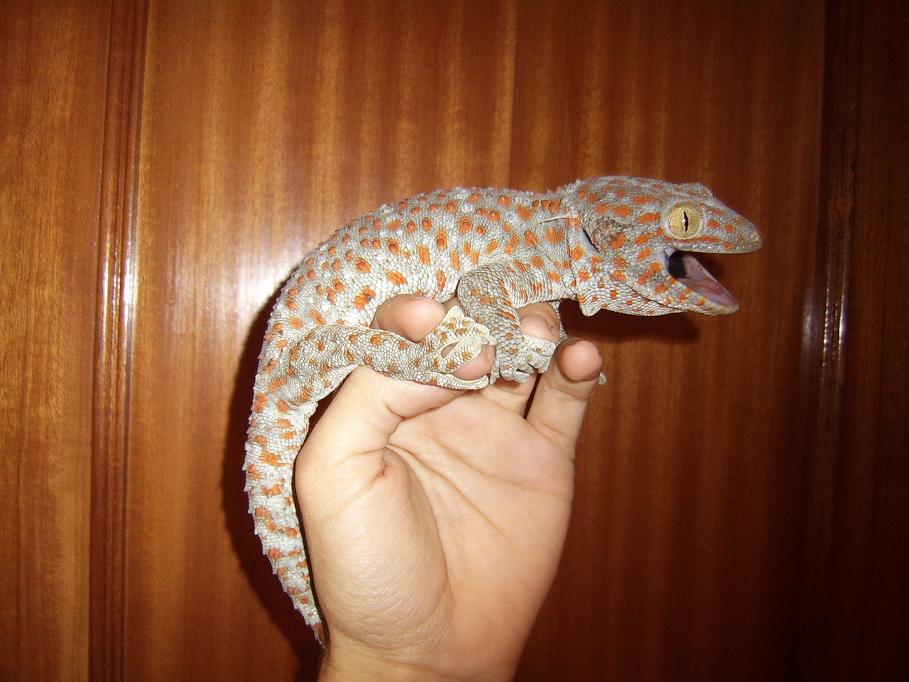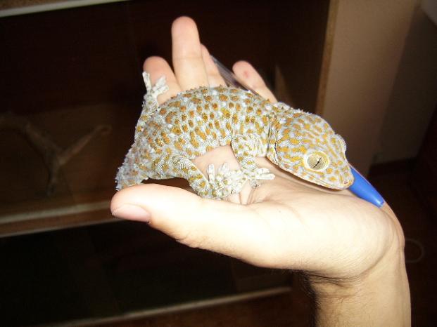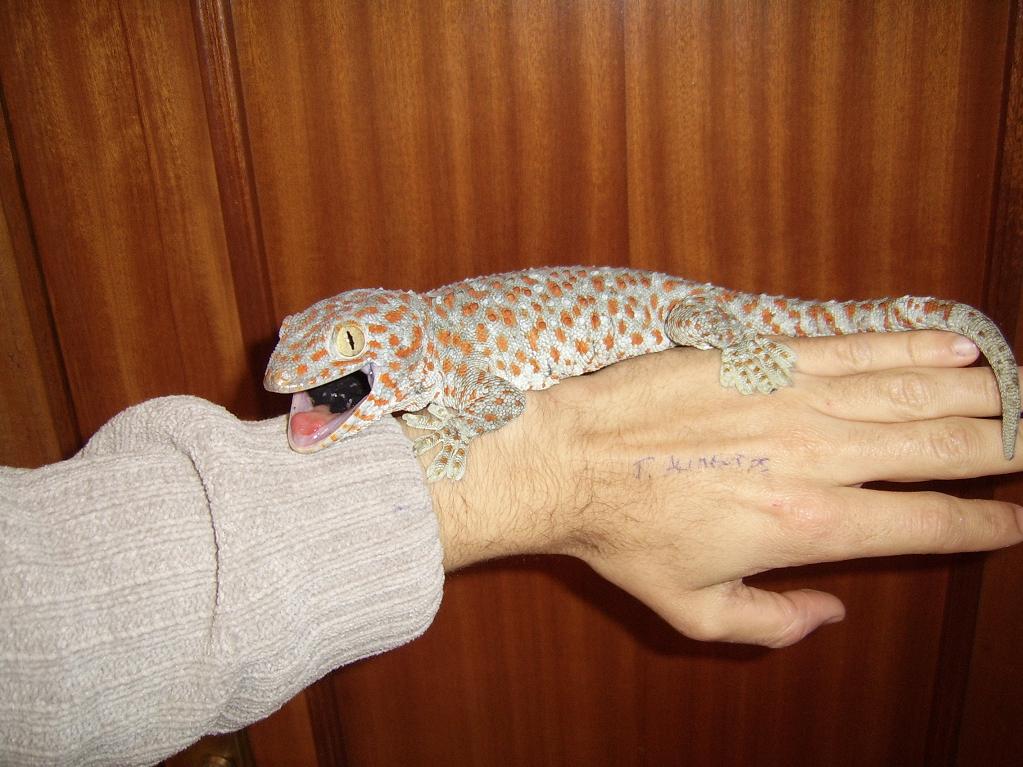 Para que veaís que algún tokay es manso... aquí os pongo a Esther, una de mis dos hembras... con la boca cerrada