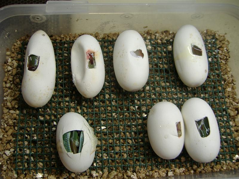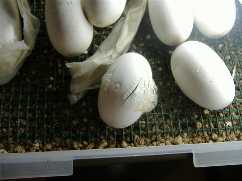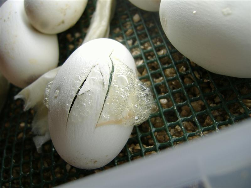 Mirad lo que me encontré anoche! La cosa se ha adelantado más de lo que pensaba. Encontré un huevo rompiendo y ya les hice al resto una ventanita por precaución.