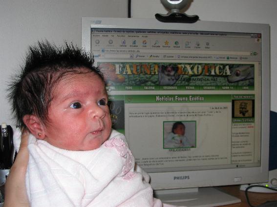 Gracias al equipo de Fauna Exótica de parte de Carla y sus papis, y a todos sus usuarios.Nos ha hecho mucha ilusion ver su fotillo en portada,jajaja.En cuanto pueda le haré unas fotillos al lado de los bichos para colgarlas y seguro que será una usuaria más de este foro en cuanto sepa escribir.