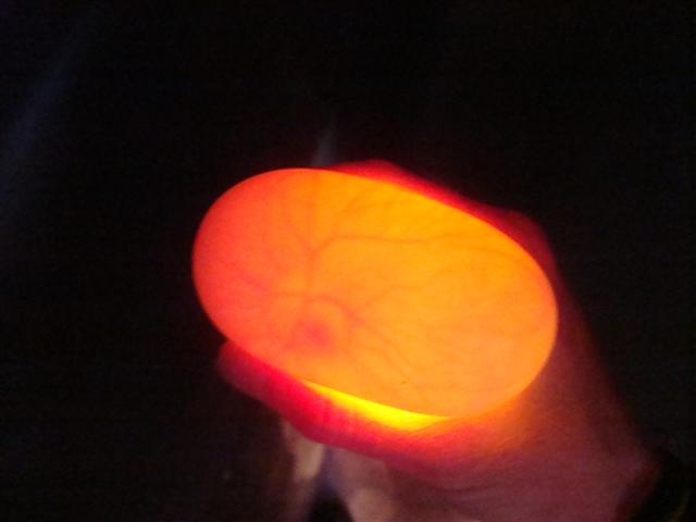 Huevo infertil (el mas grande de los tres infertiles pesaba 100g, pero ni rastro de venas...) y he mirado los de la granito normal que eran todos pequeños y me parece a miq ue no hay ninguno fertil :(
