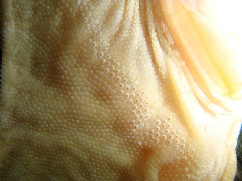 Seguro que la tuya es hembra, deberias de ver los poros bien marcados, mira uno de mis macho con 1 años y 3 meses, como marca los poros...