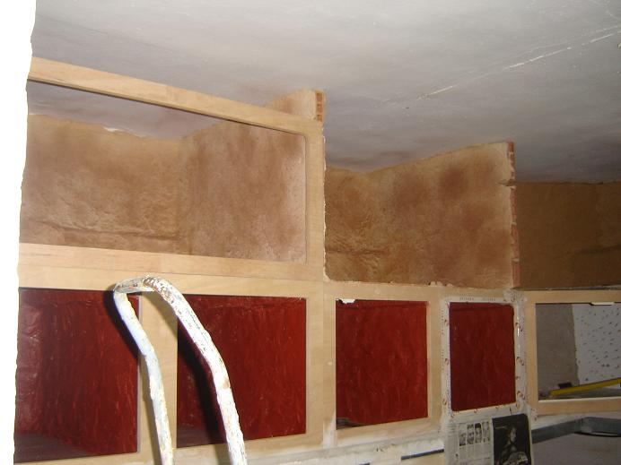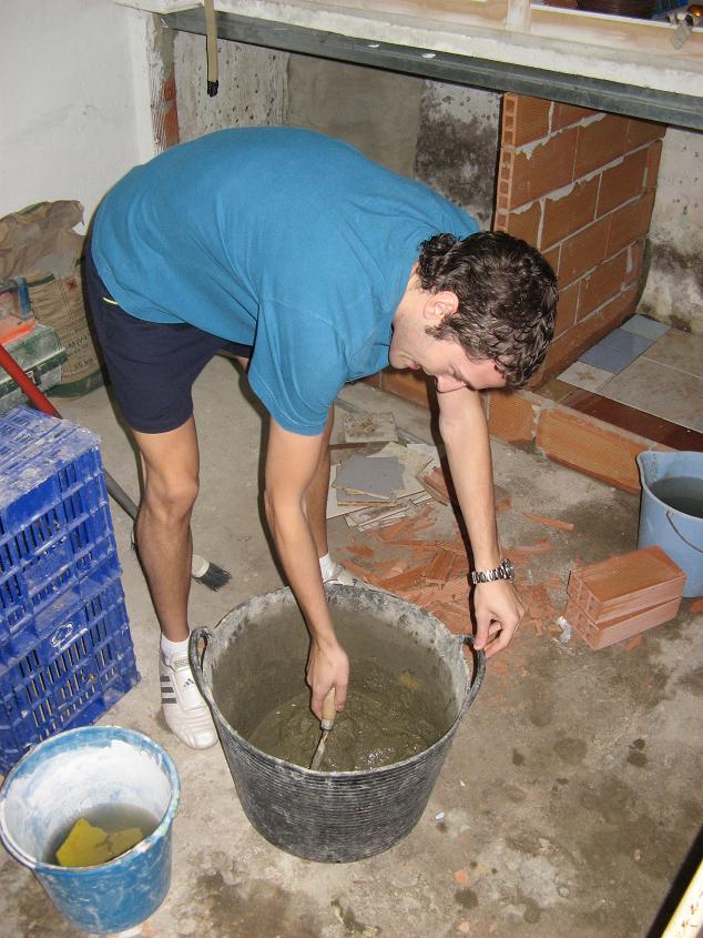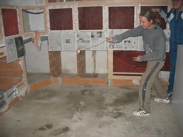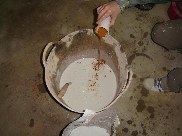 en esta foto para que veais la mezcla que estamos haciendo , que despues de haverlo echo con material se nos ocurrio hacerlo con cemento blanco mezclado con arena y asi quedaron las paredes.
