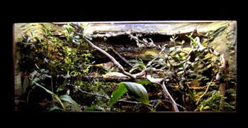 el terrario esta especialmente diseñado para esta especie las temperaturas y rangos de humedad están en lo correcto, según lo que e leído, las dimensiones son 60 de altura (área visible, mas sustrato 15cm) 60 de profundidad y 120 de largo.