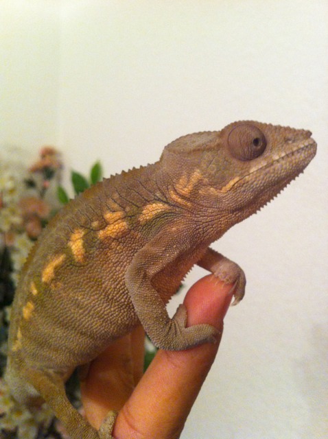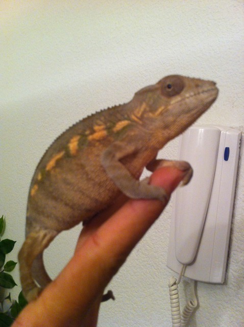 Escribo por un camaleona pardalis que me compre en expoterraria hace un mes y me dijeron que tenia 5 meses. Por lo que ahora en teoria tiene 6... De cabeza a cloaca mide 12 cm y hasta la punta 24 cm. Desde ayer creo que esra gravida porque ha cambiado de color. Al macho no lo ha visto porque esta a 70 km jejej ( cosas del amor). Mi ptegunta es, la junto con el macho? Le dejo que se pase el calenton? Si la peso sabre si esta preparada?