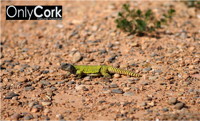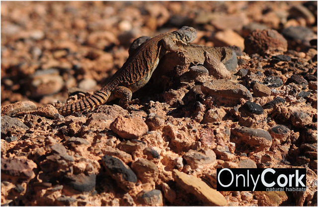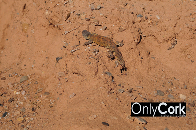 Tambien en la misma zona, en la segunda foto, uromastyx juvenil anaranjado, se ve claramente la tierra donde pueden facilmente escarbar. Aunque en todas las fotos se vea como capa dura la tierra, bajo esa primera capa, es esta tierra la que encontramos por la zona.