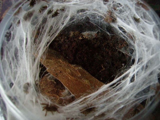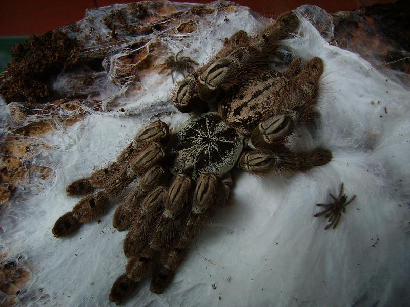 Estas son fotos de las crias k tuvo mi Heteroscodra,actualmente viviendo en comunidad sin problemas aunke a la hora de comer siempre hay alguna disputa.Saludos.