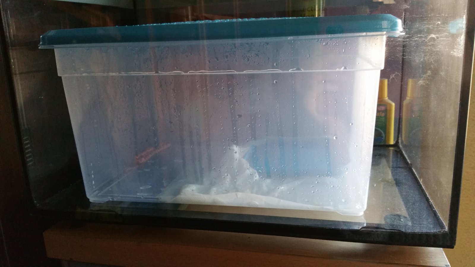 La verdad que la humedad no me ha bajado por que no le hice los agujeros en los laterales,no quise andar toqueteando mucho la caja por si se estresaba mas,pero la temperatura no consigo que me suba(te lo iba a poner en el primer mensaje y al final se me olvido =( =( =( ).