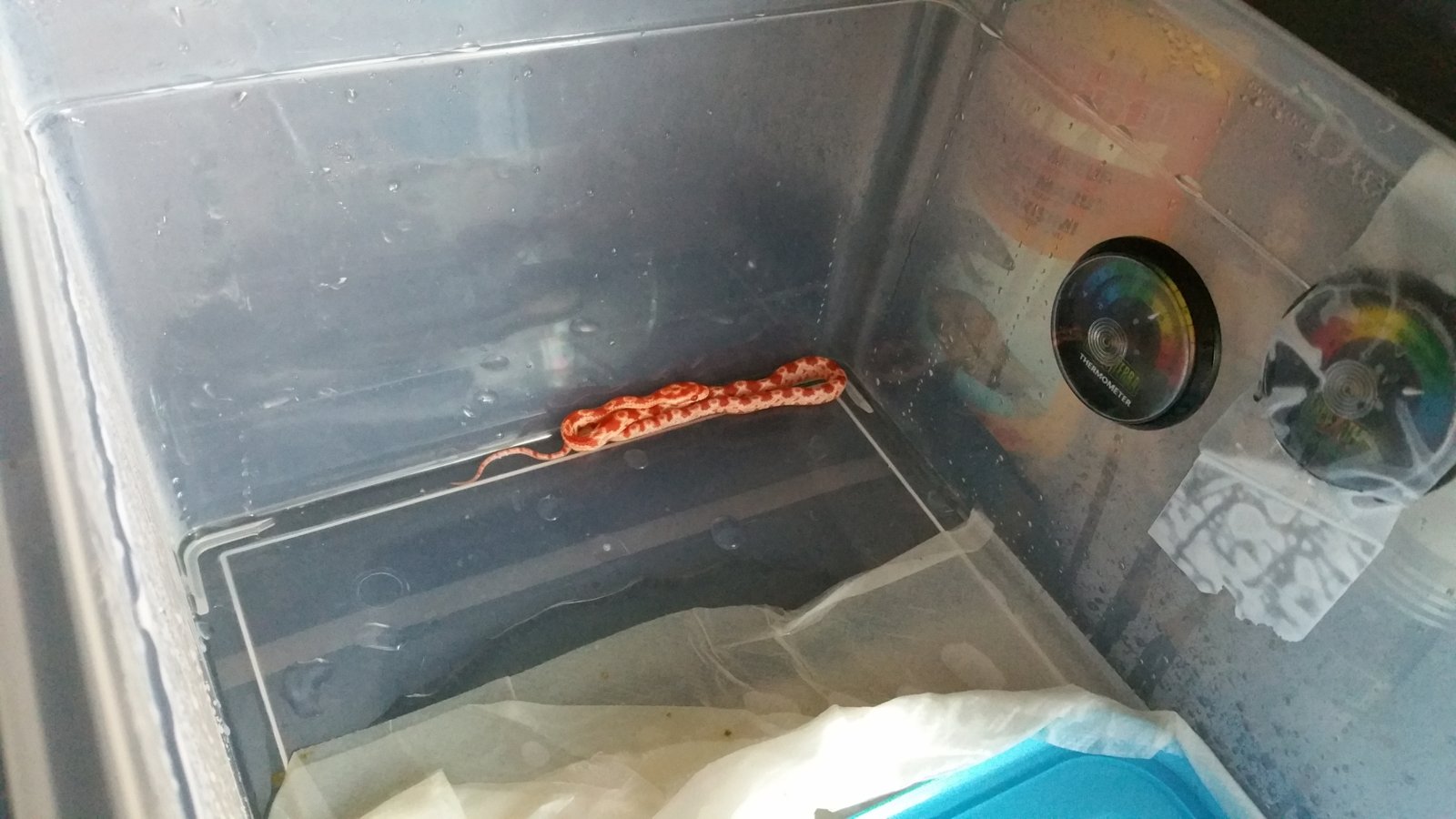 Claro....es que 20 grados es muy poco...., hombre, el termómetro esta puesto a mitad de altura del tupper, y encima de manta estará mas caliente....pero aun así es poco. Tendrás que poner una mas potente....encima de la manta tendría que estar a 30 o 31 grados, y en el resto a 25. Además si ahora ese termómetro marca 20grados, por la noche seguro que marcara menos aun... Arregla el tema de la temperatura lo antes posible, que eso es lo mas importante. Si la serpiente esta fría no va a comer, y como te ha dicho el compañero, aunque la obligases, si no tiene temperatura suficiente para hacer bien la digestión, acabaría regurgitando la comida....o peor aun, se empezaría a descomponer la comida en el tracto digestivo, y eso es un problema muy grave. Así que soluciona ya lo de la temperatura, y en cuanto la tengas bien prueba a dejarle el pinki vivo toda la noche, si no al día siguiente, pruebas a dárselo con la rajita en la nuca, y si sigue sin comer , tendrás que empezar a embuchar....porque esta bastante delgadita ya. Además ese tupper esta saturado de humedad, que para hacerle los agujeros no pasaba nada porque la hubieras sacado.... si tienes ya preparado el otro terrario con una ventilación adecuada, ponle una manta mas potente, y empiezas desde cero en ese terrario con la temperatura adecuada, si decides seguir teniéndola en el tupper, igualmente le tienes que subir la temperatura y aumentar la ventilación....pero lo que sea tienes que hacerlo YA....antes de que sea demasiado tarde...un saludo .