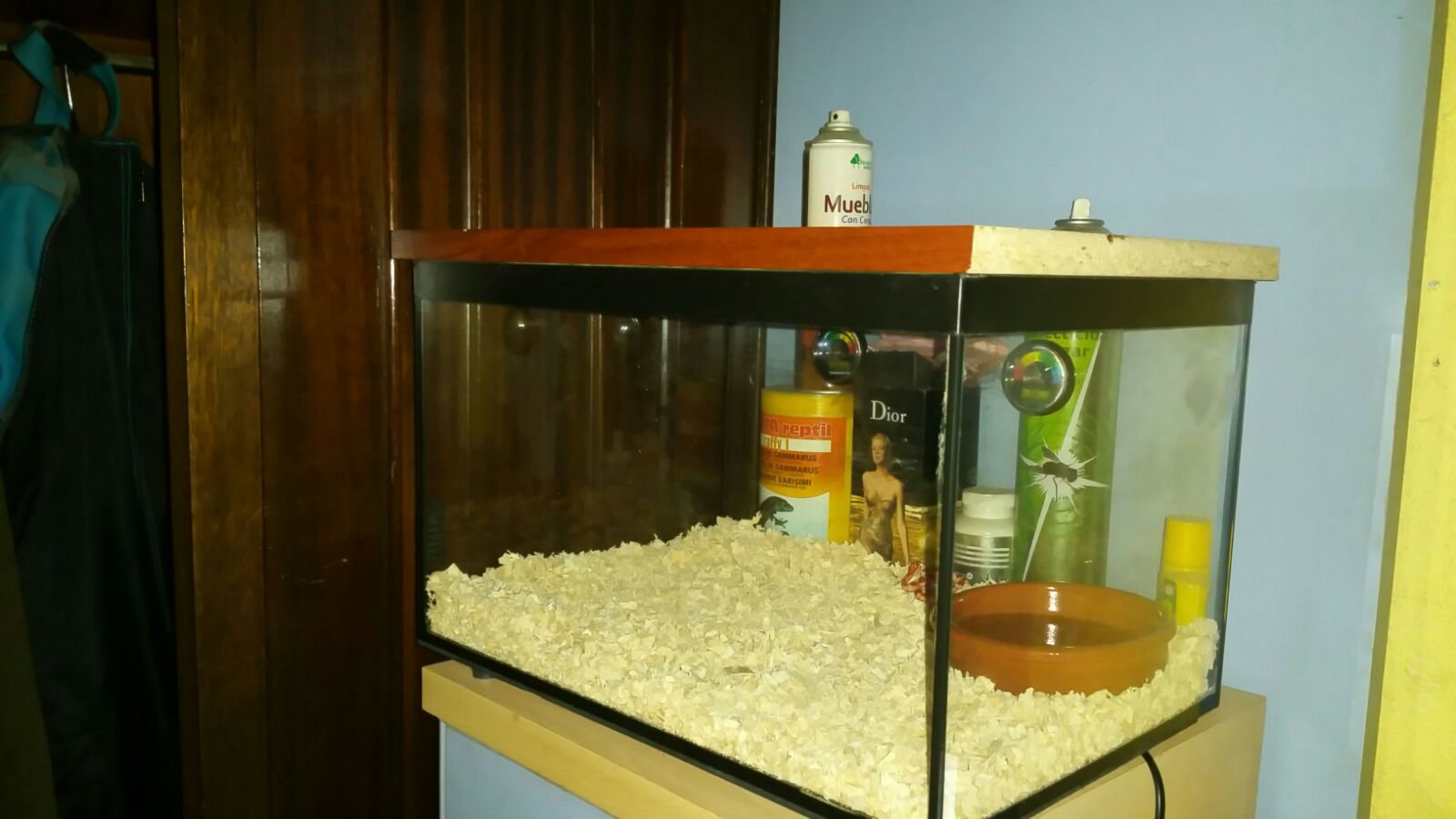 Nos hemos pasado con el sustrato?? Tb me faltaria ponerle un tronquito para que se pueda sacar la muda,pero eso ya cuando me coma algo...