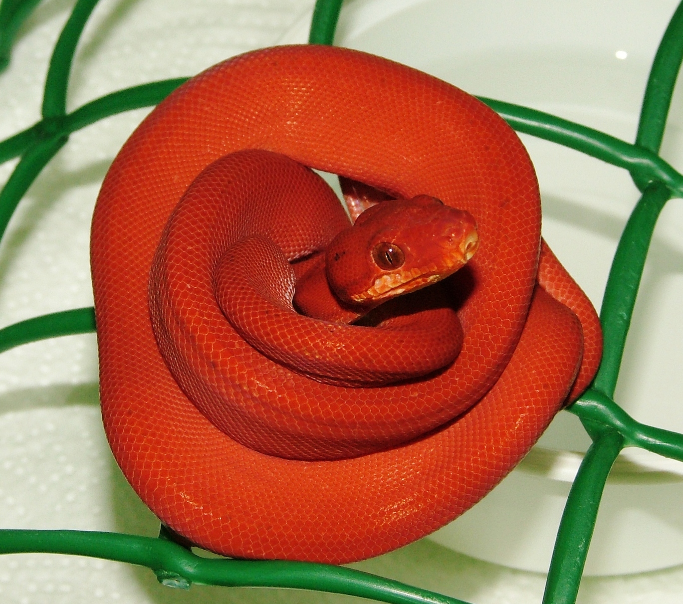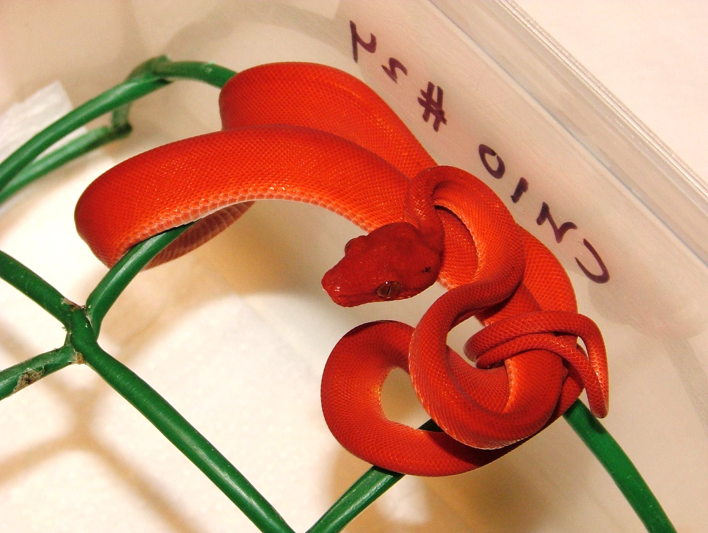 Para seguir con el hilo de las Tigers rojas, dentro del 2º parto con crías Tiger nacidas en Agosto del 2010, tuve la fortunar de conseguir 2 machitos rojos y Tiger que desde un primer momento mostraron con claridad que ese era el rojo que yo venía persiguiendo en neonatos de esta especie, es decir, que recién nacidos y aun antes de hacer su primera muda ya se puede observar su color rojo granatoso sólido que nos indica que ahí hay posibilidades de obtener una hortulanus adulta roja de alto nivel.