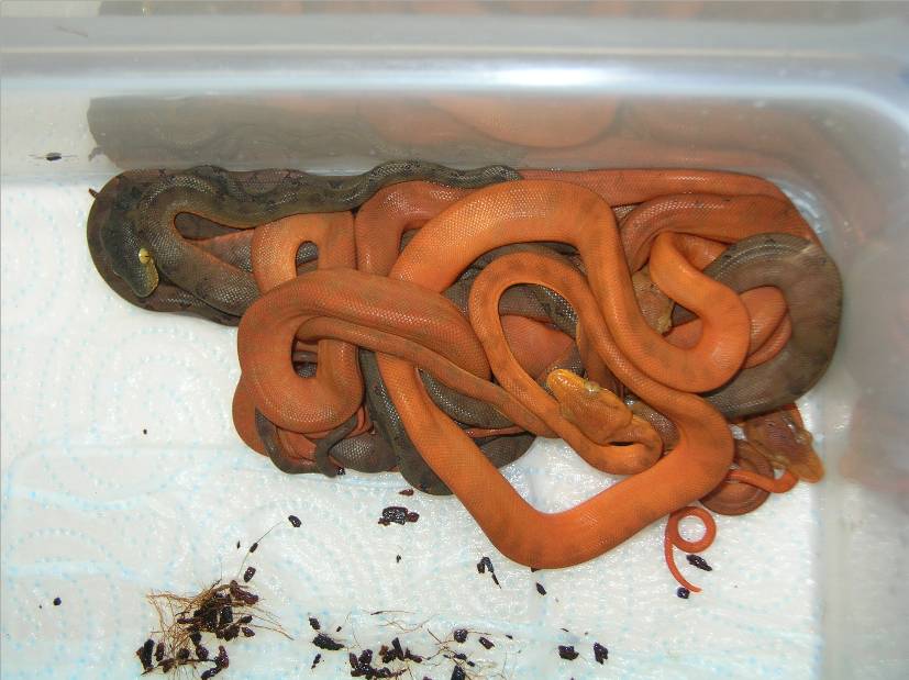 Fueron 10 crias y 0 slugs (aunque quizas se los habia comido ya la hembra cuando llegué), de las 10 crias una estaba muerta, el resto son 3 garden y 6 coloreadas (algunas de ellas bicolores).