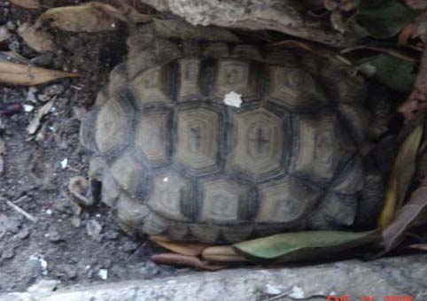 esta toruga es de una señora vecina mia y no tenemos ni idea a que especie pertenece alguien nos puede decir que especie es, la foto no es muy buena pero la camara tampoco el animal esta ivernando creemos y no la quisimos tocar.