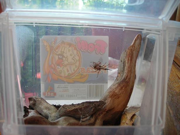 Es verdad esto de que viven cerca del agua.La coji en un puente de las compuertas de un rio para canalizar el agua para un canal.Hacen telas que pueden llegar a medir(al menos las que he visto alli) hasta dos metros o mas no de diametro,sino que ellas hacen un circulo de telaraña y la atan donde pueden con contrafuertes o algo por el estilo,jejejeje.La verdad es que son espectaculares,y las he conocido toda la vida alli y solo alli.Te puedes encontrara a la orilla del rio alguna entre las hierbas secas pero donde mas hay es en 20 metros de la barandilla del puente.No he ido hasta alli pero viendo mis spiderlings.........supongo que alli habra miles.La verdad es que la tengo en un tapper de 3 litros y mas o menos cuadrado.Hace la tela adaptada al tapper y orientada a la boca del tapper por el que la suelto las moscas.Tiene todo lleno de tela pero no se ve mucho porque son muy finas.Saludos.