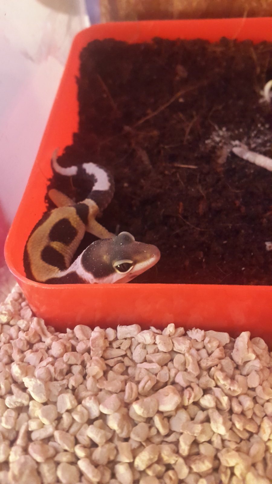 Hola a todos al cabo de muchos años he vuelto a interesarme en los geckos leopardo,tuve una hembra hig yelow durante varios años y ahora he adquirido 2 crias de aproximadamente un mes o creo que menos,estoy perdido con las fases,sobre todo de pequeños que cambian su patrón etc y me gustaría identificar estos,uno creo qye es raptor el otro tengo mis dudas,tambien me gustaría saber si es mejor darle ahora de dieta base grillo ya que el criador les daba tenebrio y hoy después de dia y medio tranquilos he probado a alimentarlos y no han querido,perdón por el tocho y gracias! Adjunto fotos de las crias