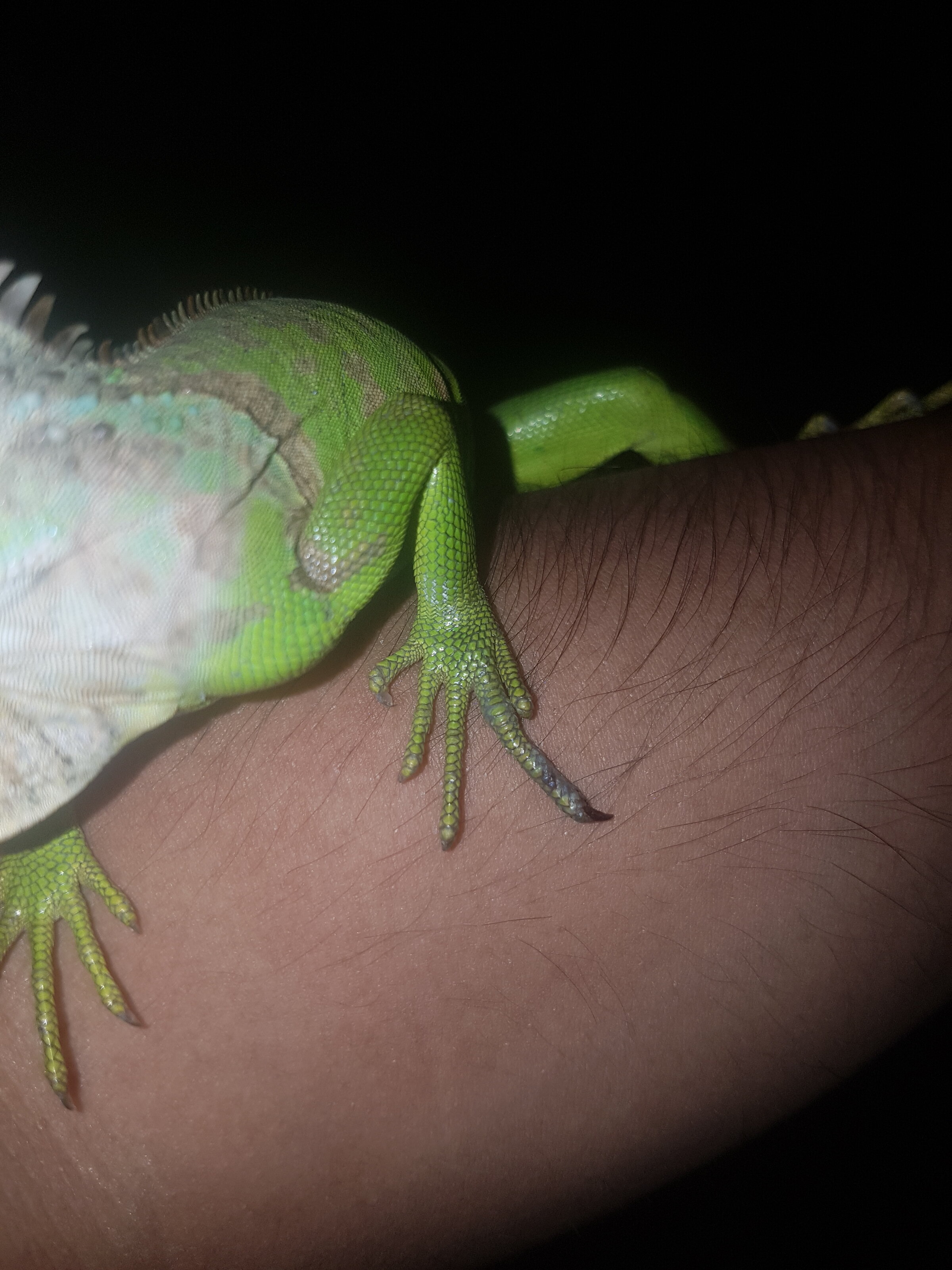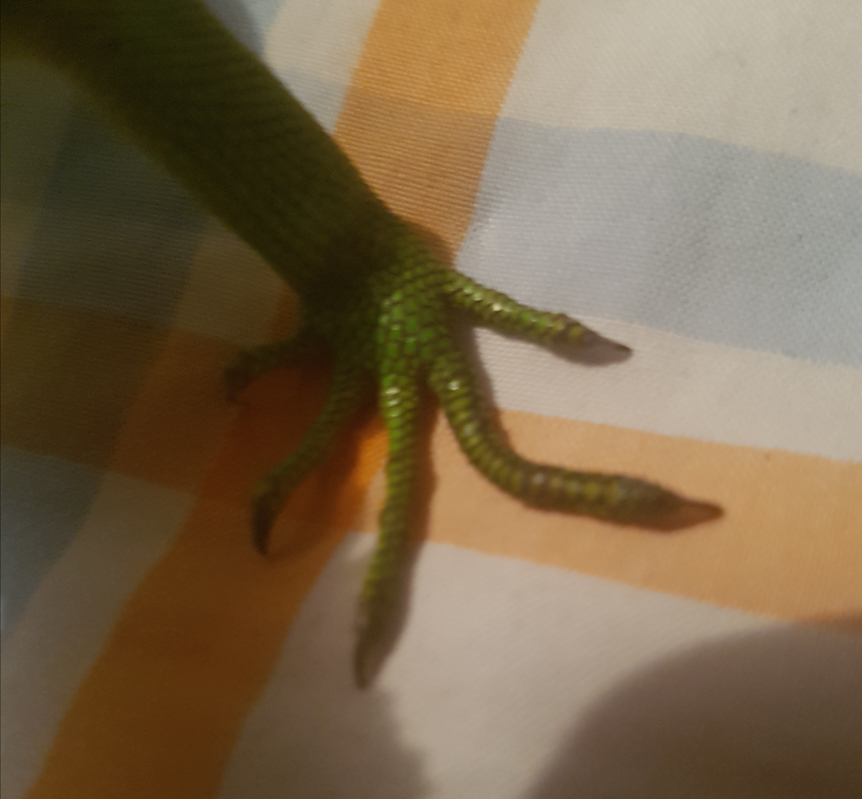 Hola, alguien me podria ayudar, hace unas semanas note que mi iguana tenia el dedo muy doblado (foto donde esta en una sabana), como que se lo habia roto, se lo entablille y ahora se lo veo de esta manera (foto donde esta en mi braxo), me habian indicado que no era principio de EMO , la verdad temo que si sea Eso y ps si si lo es, alguien me puede orientar para evitar que siga avanzando