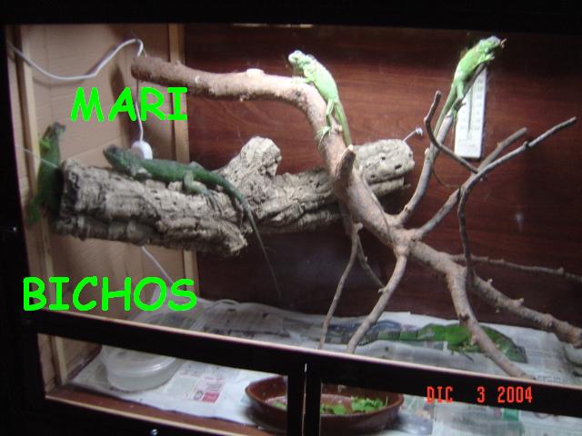 Hola para todos :D soy nueva en este foro, Mari Bichos, estan bellas tus iguanas, mira en la foto de abajo para arriba la segunda tienes dos iguanas en un palo de madera una de ellas se le ve una bolita de lado izquierdo al terminar la pierna, un poco arriba que es:confused: te pregunto porque hace unos dos dias que le vi uno igual a mi iguanol, a veces lo tiene y otras no se le ve nada, a ver si me pueden ayudar para ver que es, ya que no encuentro un buen veterinario :confused: muchas gracias.