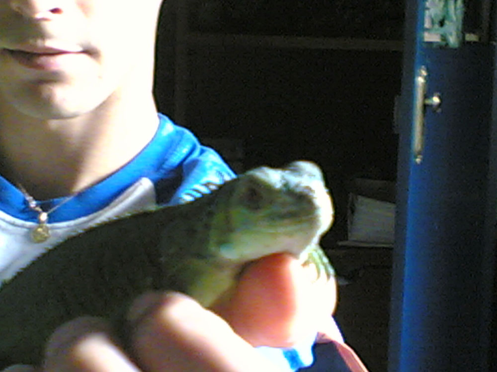 jeje, tendre que entrar con armadura cuando quiera limpiarle todo...hablando en serio, no creo que me suponga ningun problema, no "me va a querer comer" y seguro que ella se asuste mas que yo, paso mas de 4 o 5 horas al lado de ella, esta encima de mi escritorio, esta cara a cara conmigo todo el dia, y a veces me hacerco a mirarla mas cerca y se mosquea, y a veces no, esta zumbada, tengo pensado en un futuro mantener caimanes crocodilus, y eso comparado con la iguana...