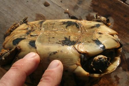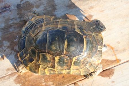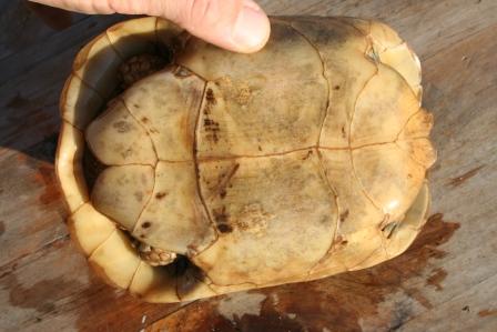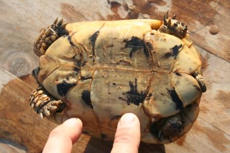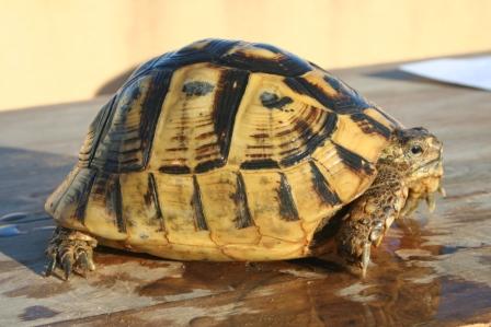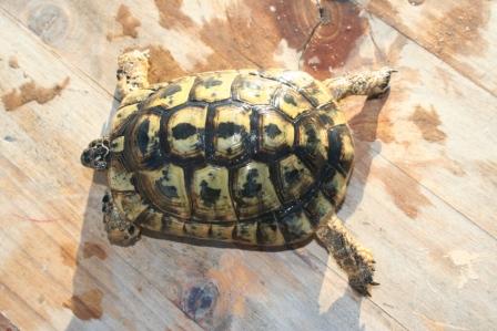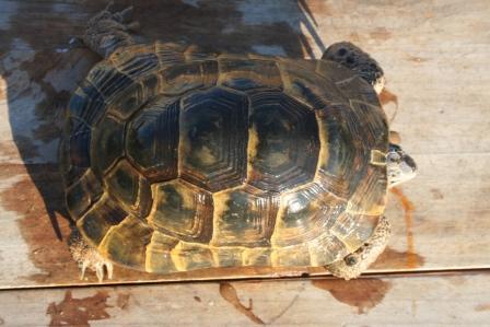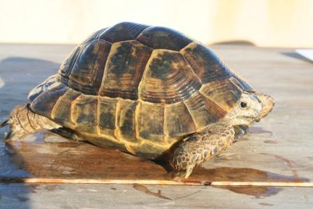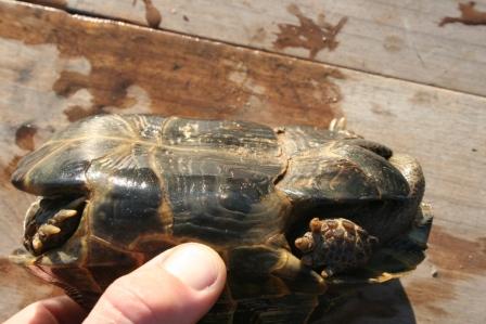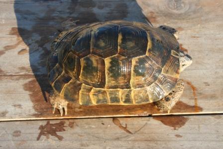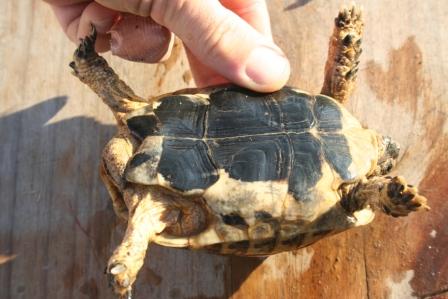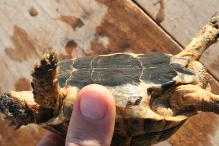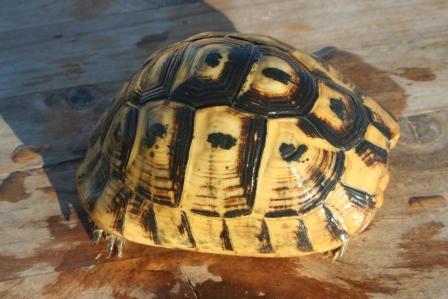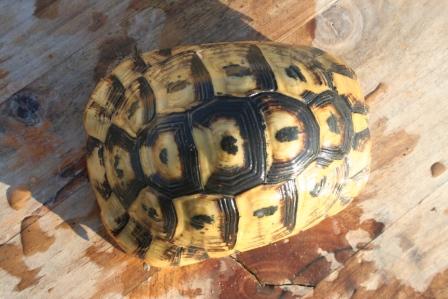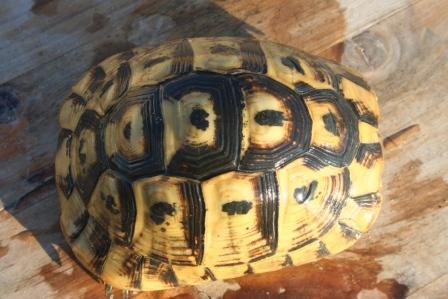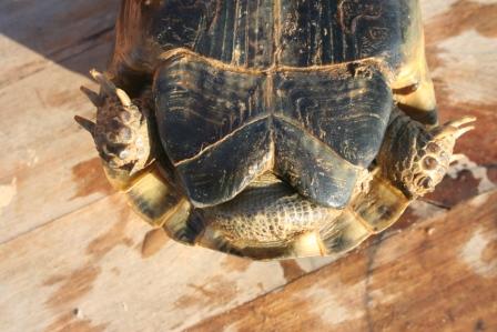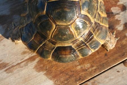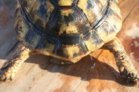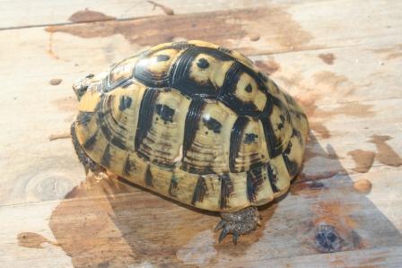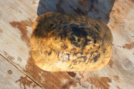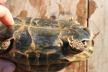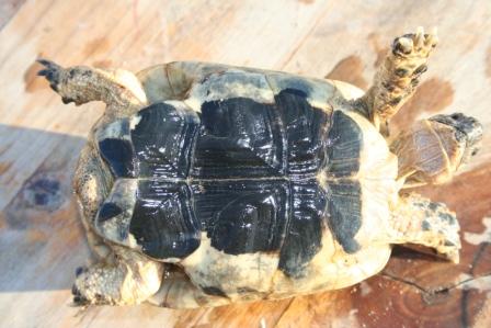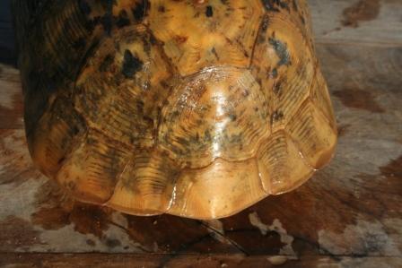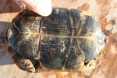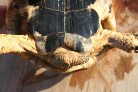 Esta anciana y fantastica hembra fallecio en julio del 2009 despues de un año luchando con una infeccion renitica de las vias respiratorias. Los sintomas eran lentitud, problemas para comer, movimientos de contraccion del cuello, muy timida y casi siempre esconida dentro de su caparazon. Despues del invernaje empeoraron los sintomas con mocos en la boca y ojos llorosos asi como ruidos a la hora de respirar. La tuvimos que aislar del reto para impedir contagio ........... te echaremos de menos....