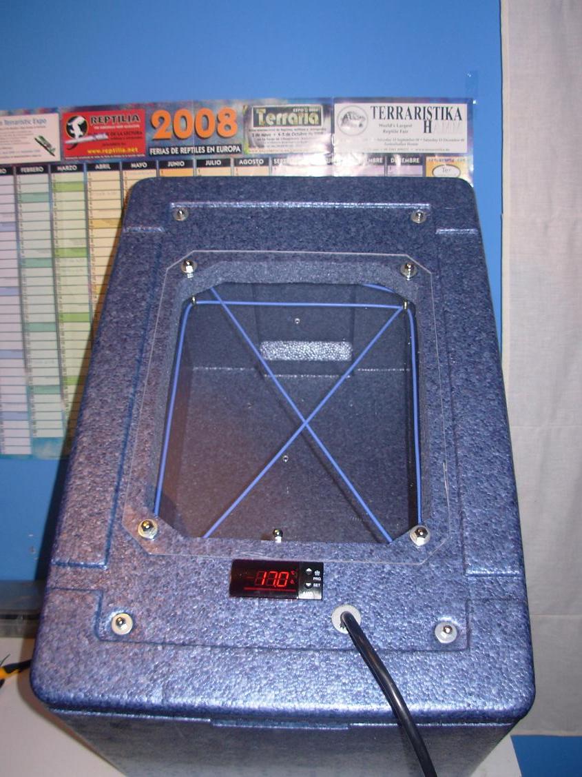 Otra igual de sencilla, una caja de corcho blanco, una manta termica de unos 16W y un termostato.