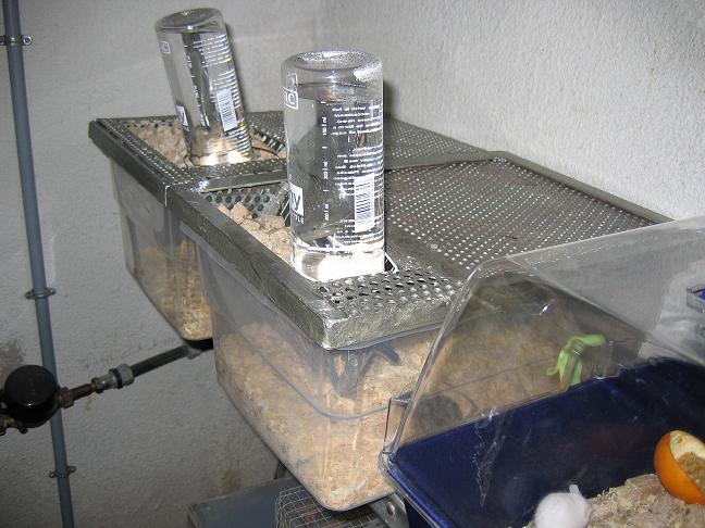 Pues pongo basicamente como lo he hecho y lo que ha costado cada cosa, el perfil, vamos lo d la 1ª foto, puedes ir a un herrero o sitio dnde trabajen el metal y pides un perfil, solo tienes k medir x fuera y x dentro e ir a que te lo hagan o bien pedir una vara de perfil y cortarla a tu gusto, pero debes tener una radial y una soldadora, jeje, bueno la rejilla, pues la tengo de unos tractores antiguos, que tb puedes comprarla en una herreria o sitio que trabajen el metal, la pides como cubre chimeneas y listo, pero que os enseñen varios modelos para buscar el adecuado, no pongais de agujeros de 5 cms d diametro xq si no adios ratones, jejeje. El hueco para la comida es muy facil, una vez tengais la rejilla, pues se calcula con la union al perfil y se hace de al abertura deseada, en este caso 15cms, espacio suficiente para comida y bebedero, todo esto se hace con la radial, luego cortais 2 triangulos de esa misma rejilla para empalmarlas en la abertura del comedero, para que haga la forma de bajada, y una vez asi, poneis rejilla normal de alambre, que no tengo los cuadraditos muy grandes x 2 cosas, alimento y los ratones k no se cuelen. Tiene las medidas de 40x28, el tupper es de los todo a 100, x 3€, la jaula mide 40x28x20 de alto.