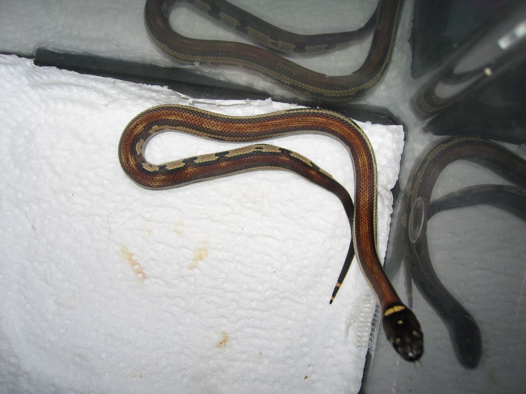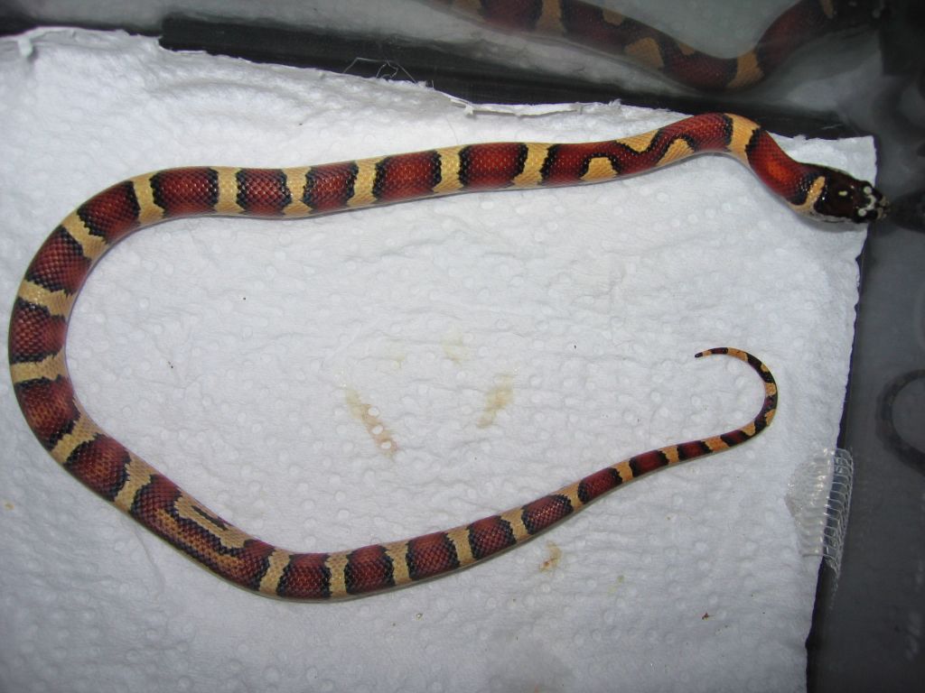 Real,en el titulo pone lo que son,el macho es un jungle corn albino y la hembra una lampropeltis mexicana. En cuanto salgan todas del huevo y muden pondre fotos de cada una.Saludos.​