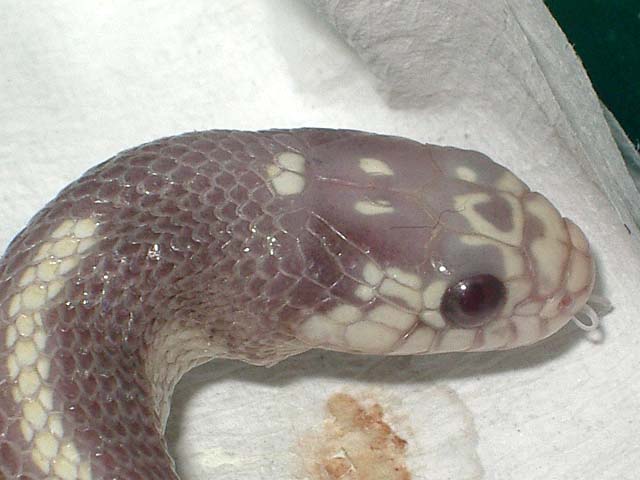 y cuando se junten las dos mutaciones? pues me da que sera como un albino ni mas ni menos puesto que lavender es hypo y albino es amelanistico. El amelanismo enmascara el hipomelanismo por lo que el animal sera hibino pero el color sera de albino, supongo