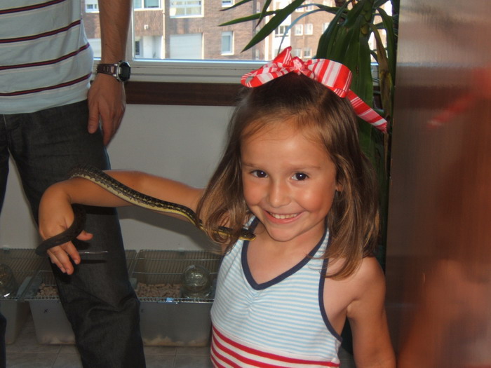 Otra foto de mi niña Sara, con una Python timoriensis baby, no sólo no le dan miedo las boas y pitones, sino que le encantan, sus prefes son las Morelia, pues no podía ser de otra forma.