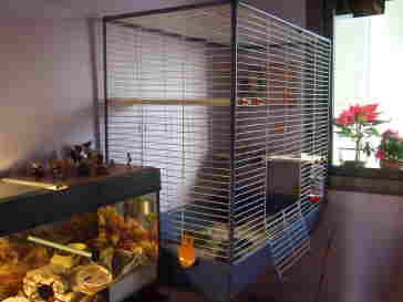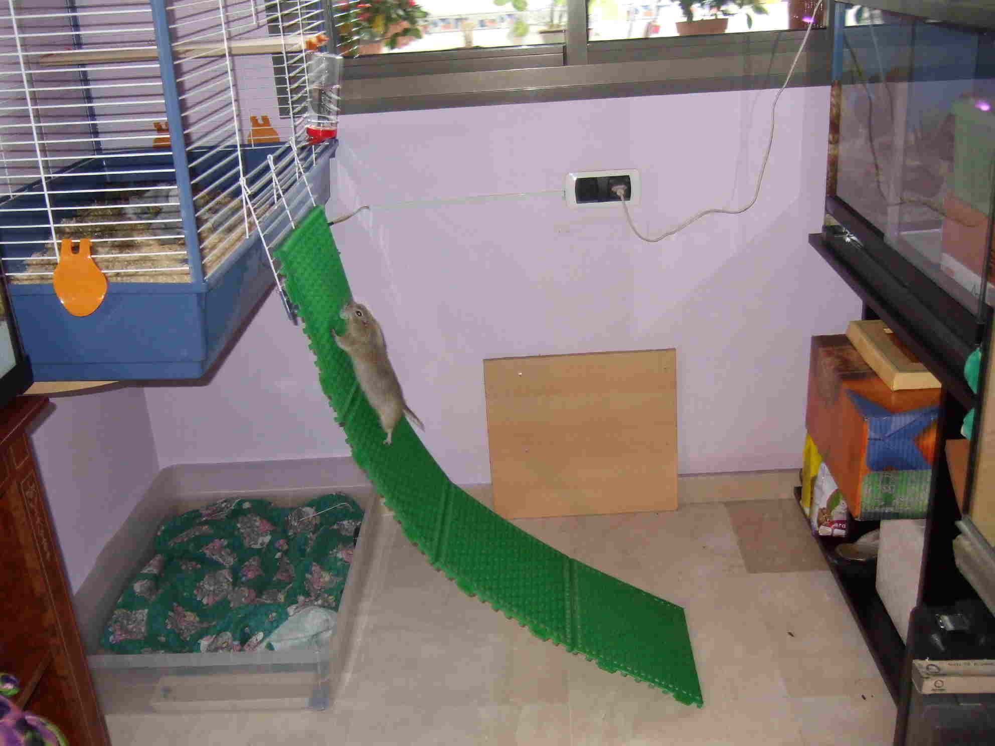 La verdad es que dudaba que alguien pudiera ofrecer dentro de un piso/casa un lugar adecuado para vivir a un animal de este tipo pero vista la jaula y todo en conjunto tengo que retractarme. ¡Qué suerte ha tenido Bolita! Felicidades.
