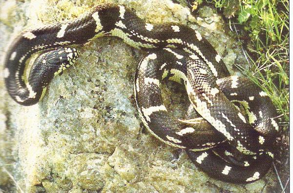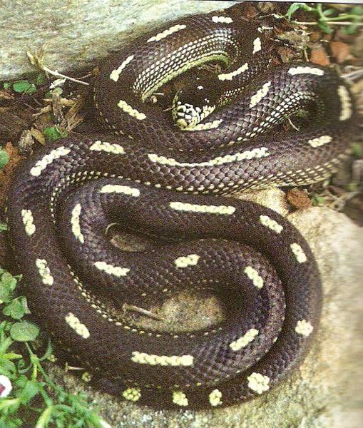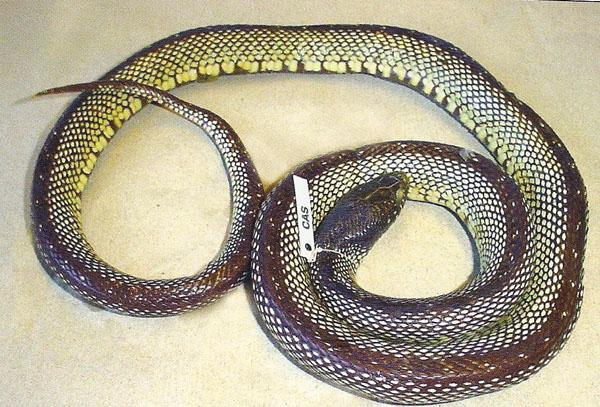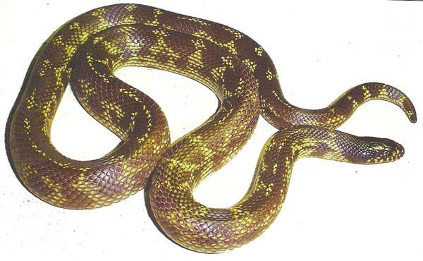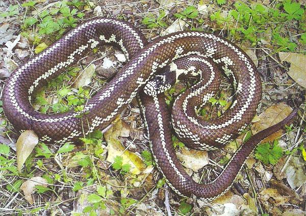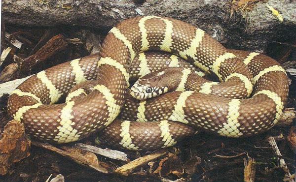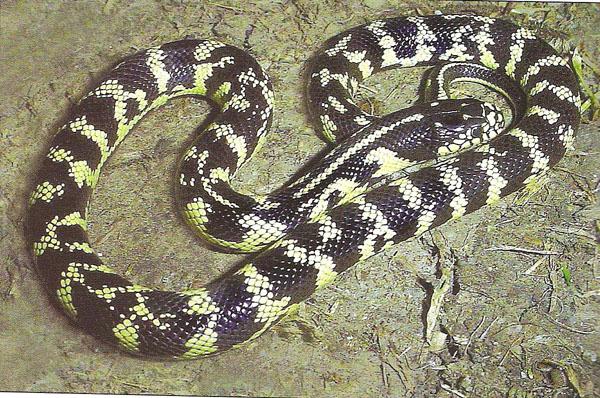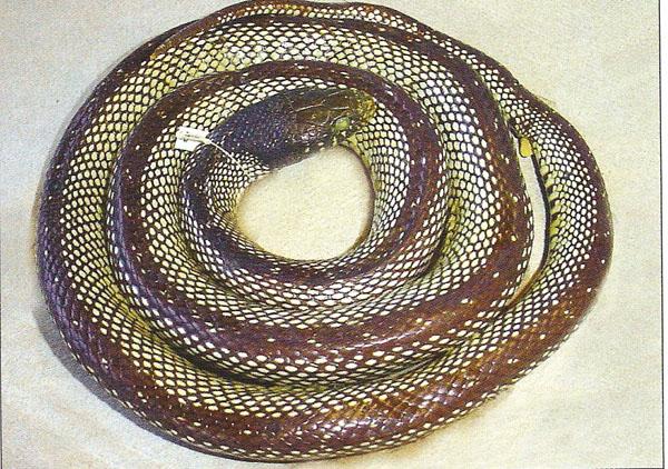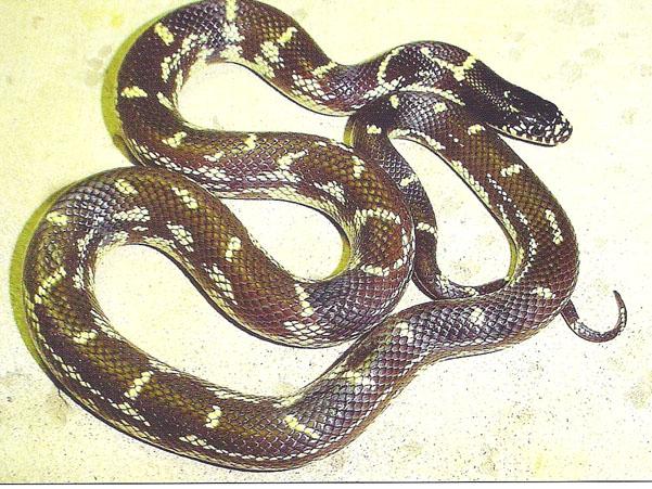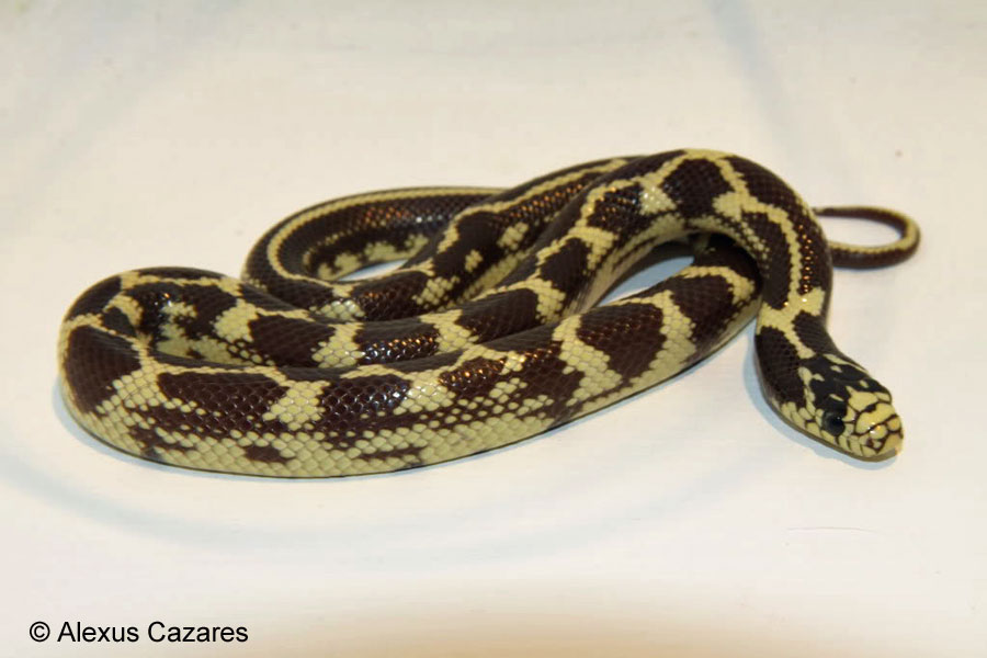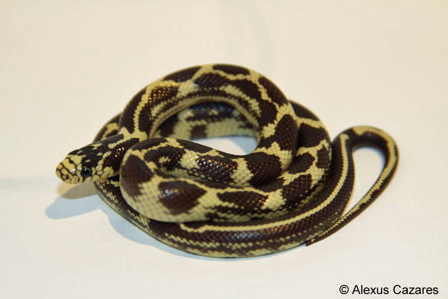 Es una californiae hipermelanistica a bandas con un marrón bronceado o en vez del amarillo. El vientre es negro. las bandas oscuras van clarito del marrón al marrón oscuro