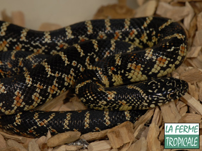 En su forma básica ademas del color clasico neegro y blanco de las getula tiene tonos amarillos y naranjas. Las escamas negras tienen puntos claros del color amarilo de fondo que aflora. Los costados sobrre todo en los juveniles tienen tonos rojizos y anaranjados que con la edad se atenuan.