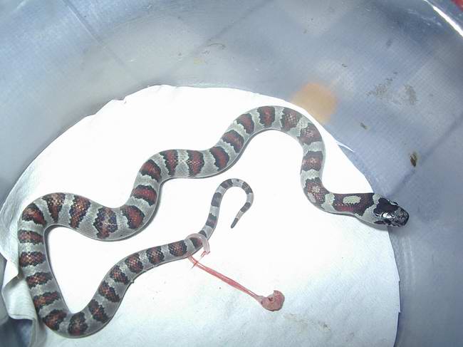 Cuando se abre un huevo para evitar la asfixia de la serpiente inevitablemente se cortan algunas venillas con las que respira la serpiente a traves del huevo, pero eso no le produce mal porque esta "proxima a eclosionar", lo que tenemos que evitar es cortar las venas mas gruesas que llegan hasta el embrion.