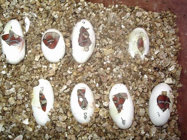 De los 5 huevos de la gentilis 4 parecian buenos y uno era infertil amarillo. A lo largo de la puesta otro de los huevos resulto ser infertil a pesar de su buen aspecto inicial. Lo abri cuando le salio moho y no estaba fecundado. este finde me eclosionaron los otros tres y me pillo fuera en una boda. cuando regrese encontre solo dos babys en la incubadora (el tercero me da que se lo comio una de las hermanas o es un expediente X en toda regla, estaba la cascara del huevo abierta y la bicha por ningun lado, lo averiguare cuando defequen)
