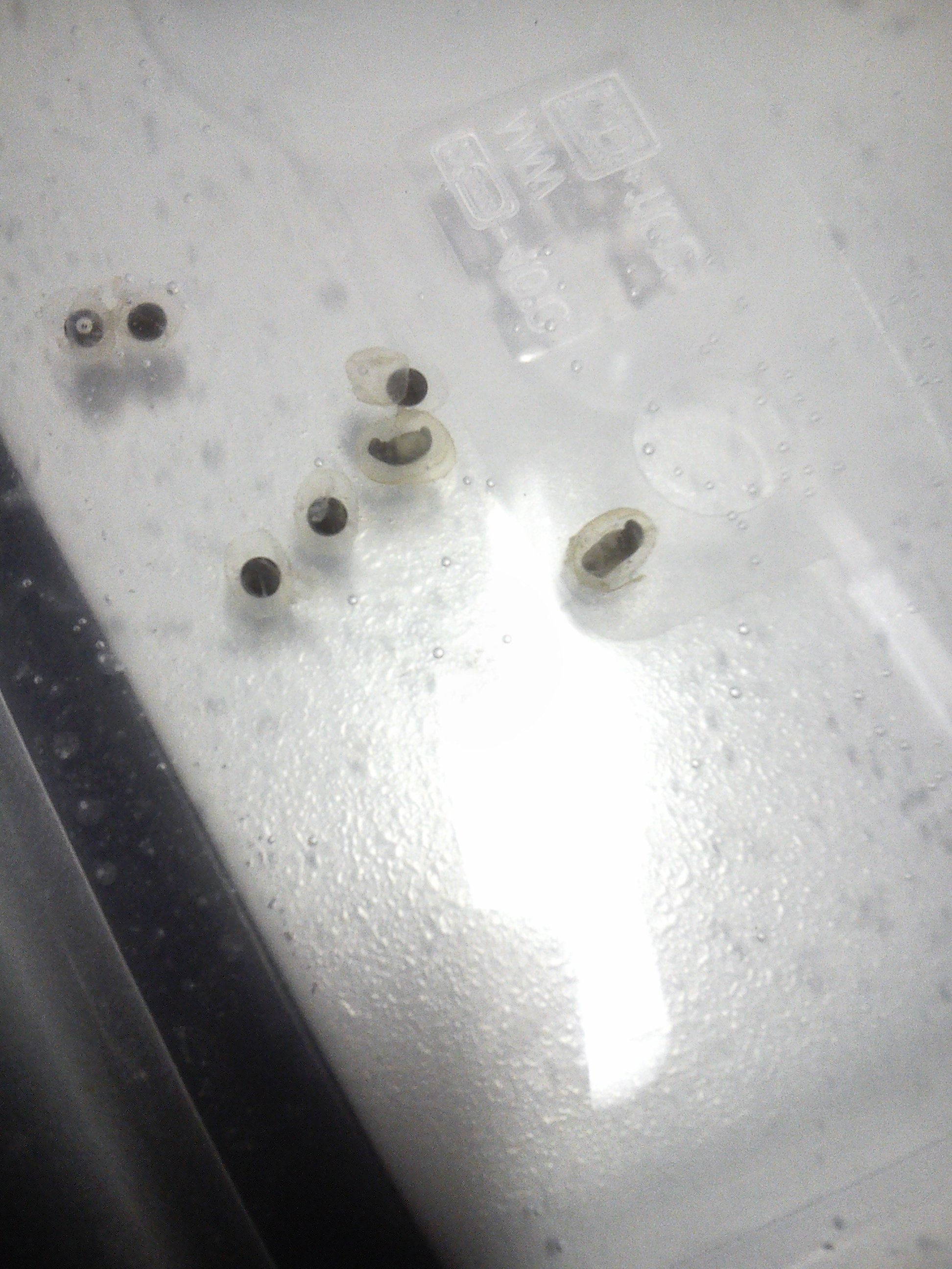 Ya me había olvidado de ellos, pero hoy he visto uno visible que parecía 100% fértil, aunque tras sacarlo con toda la alegría del mundo he comprobado que no era así; puesto que había quitado la tapa y estaba arremangado, me ha dado por mirar los de la escurridera que aparté en su día, y aquí los tenéis: