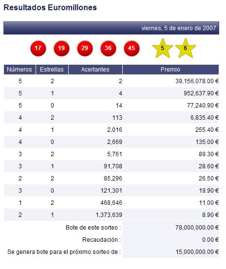 Bueno pues solo queda esperar a ver si a jfks le da tiempo a montar todo el tinglado para el euromillon de esta noche...