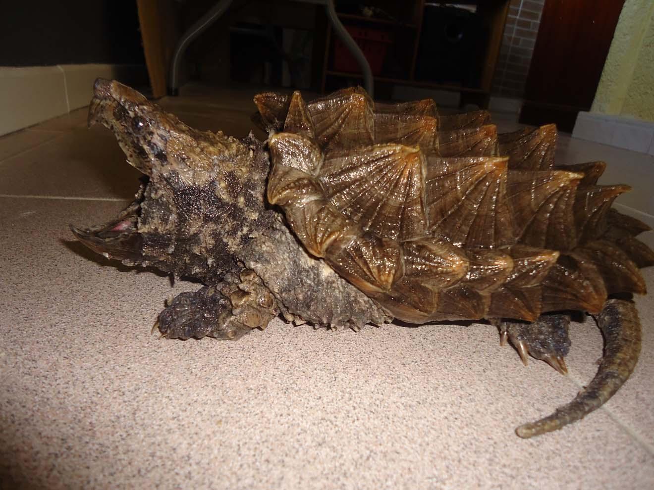 La tortuga esta en 22 cm de caparazon y pesara sobre los 3 kilos. Su acuario es de 100x50x50 con todos los '' lujos '' posibles ( filtro eheim 1000 litros hora,,bacterias Denitrol,,calentador irrompible para el invierno... )