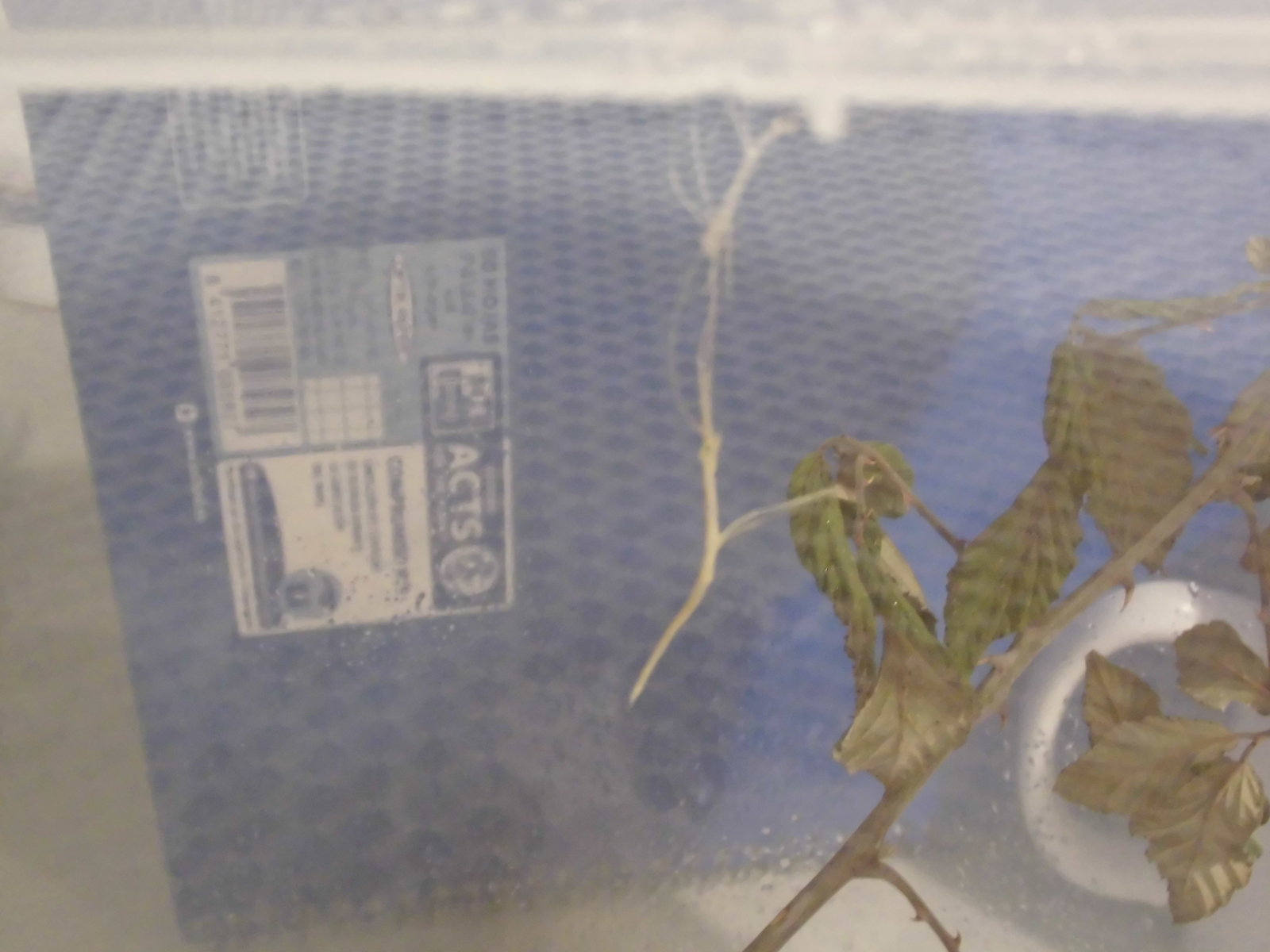 Pero acabo de volver y he visto que ahi sigue con las patas delanteras y las antenas pegadas a la muda y que las 2 patas traseras le faltan