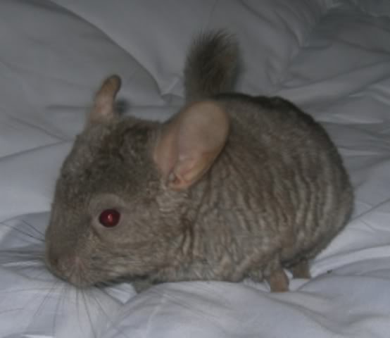 Bueno finalmente me regalo una chinchilla, tiene ahora unos 3 meses de edad y es un machito tan, con ojos rojos, una pasada de chinchilla.