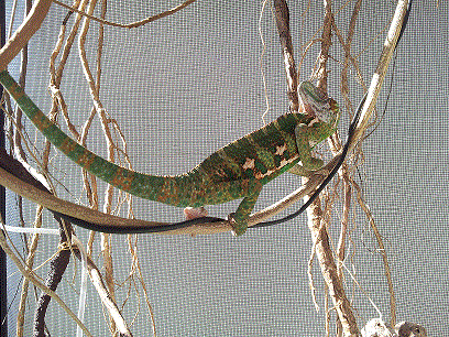 Alucinante! nunca pense que se podia tener alguna especie de camaleon todo el año en exterior, me gustaría hacerle algo parecido para mi hembra de calyptratus, ahora mismo la tengo fuera en un terrario de 90 de largo x 50 x 100, pero me gustaría hacerle uno muy grande en el jardin y asi podre comprarle algun compañero.