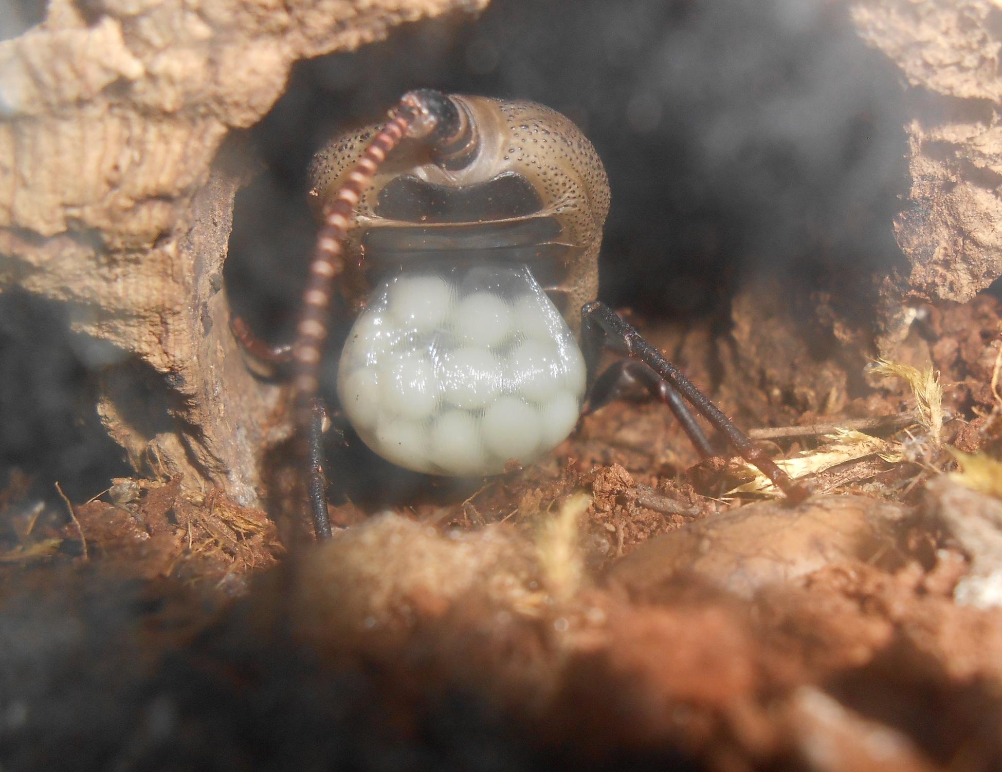 Pues resulta que he ido a mirar al Mastigoproctus, que llevaba bastante tiempo sin comer, muy tímido y con el abdomen muy hinchado, y resulta que me lo he encontrado con el saco de huevos debajo del abdomen. No tengo experiencia previa en la reproduccion de aracnidos. No ha estado en contacto con ningún macho. ¿Pueden ser partenogenéticos los Mastigoproctus? O los huevos son infértiles seguro?