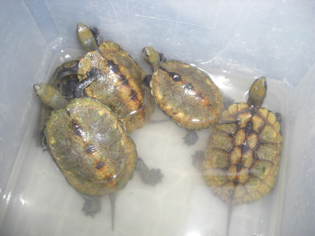 Después de algún tiempo detrás de esta especie y sin conseguir ningún resultado interesante ayer llegaron a nuestras instalaciones dos tríos reproductores de Mauremys japonica. Se trata de unos ejemplares preciosos que hoy a las 6:30 de la mañana ya estában comiendo a la perfección.