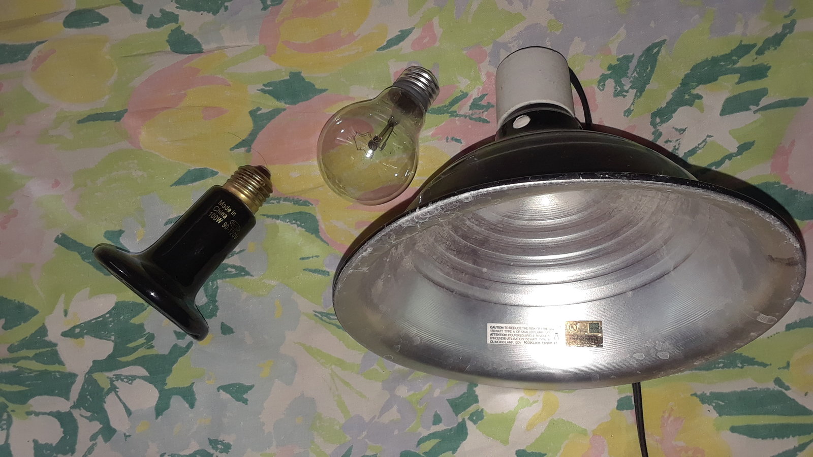 Para la temperatura estoy usando un foco de seramica de 100w 90-120v, que fue el unico que pude conseguir de momento y otro foco de luz muy potente que encontre. De alimento le doy unos grillos que, junto con un amigo, conseguimos de varios "campos" y aunque son un poco grandecitos, trato de darle los mas chicos