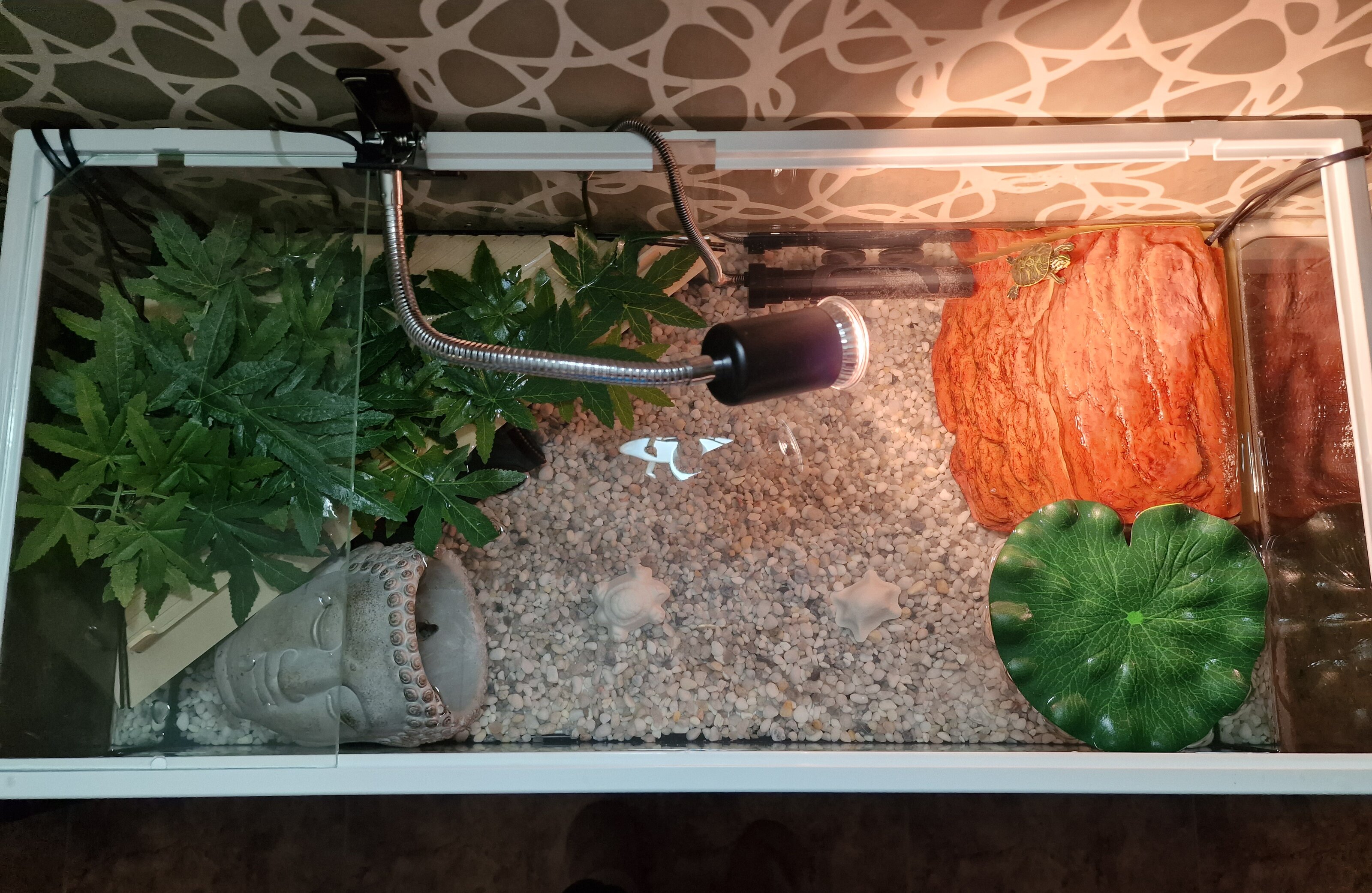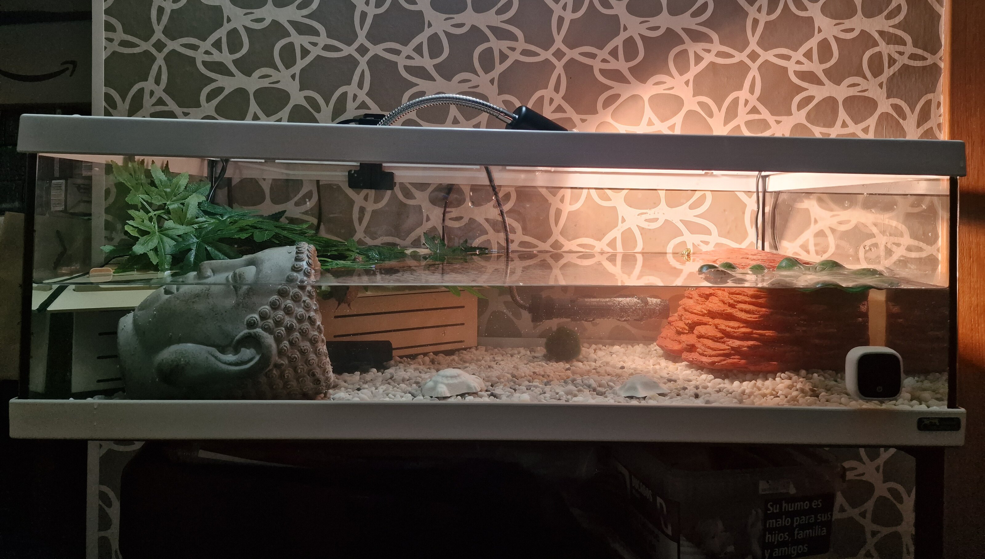 Por ahora durante un tiempo vivirán en el acuaterrario de la foto (un Tortum 75) y tenemos posibilidad cuando lo necesiten de montar un estanque adecuado en la terraza-solárium. Por ahora opináis que están bien donde están?