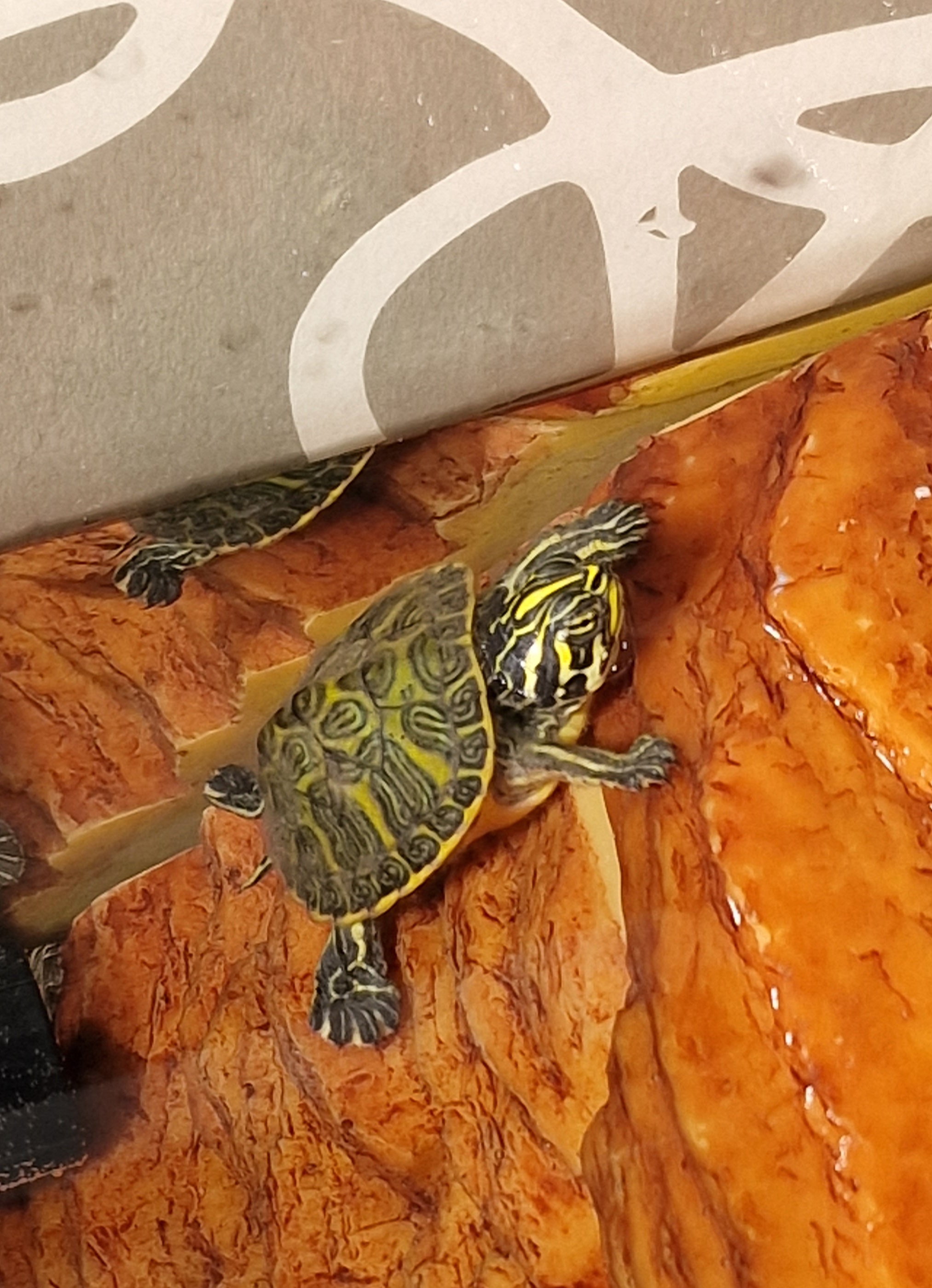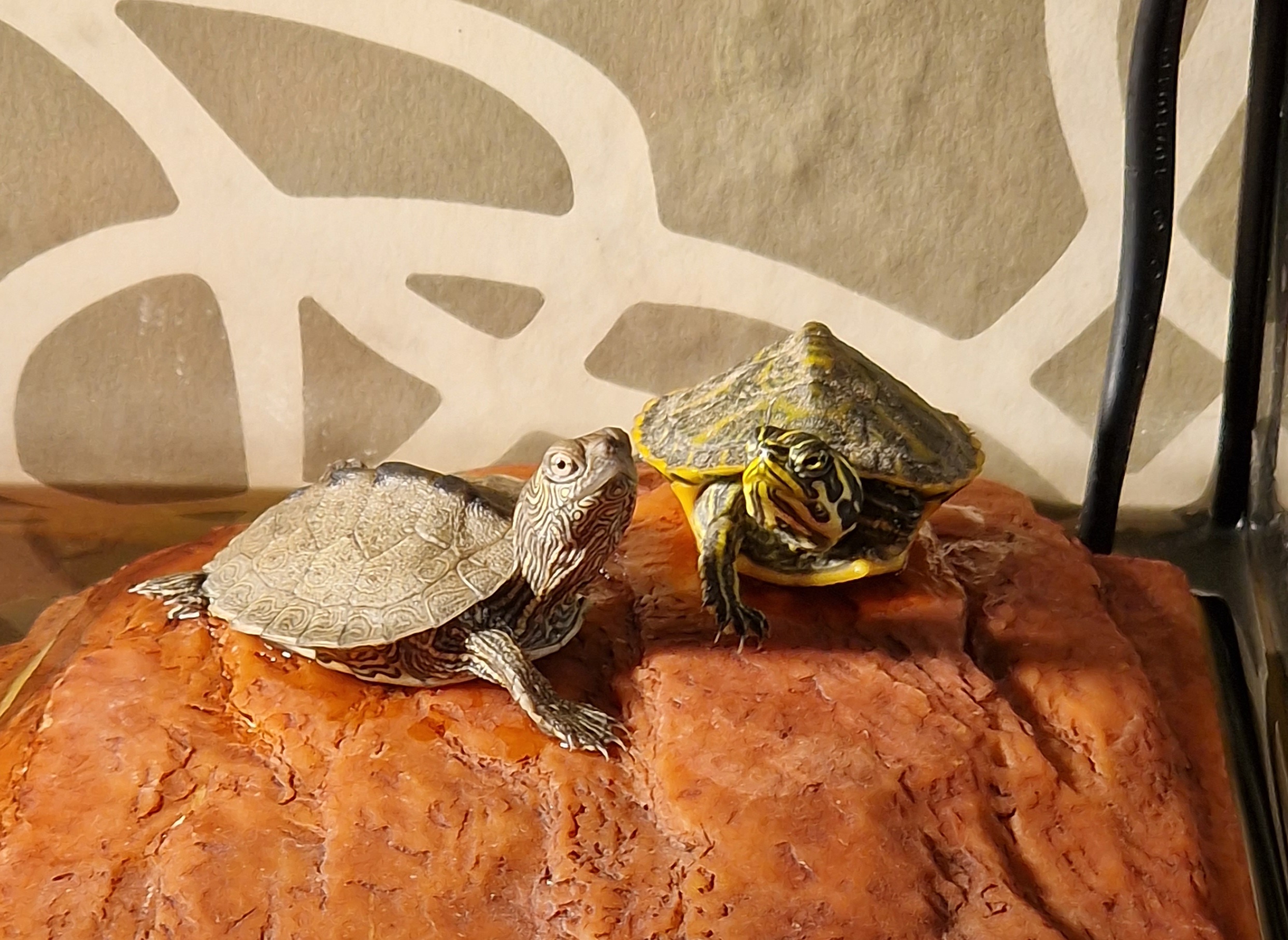 Son una Pseudemys Nelsoni (en ésta tengo dudas si acierto) y una Graptemys Pseudogeographica. Deben tener la misma edad, miden unos 4 y 3,5cm aprox. respectivamente. ¿Sabéis decirme a cuantos meses corresponde de vida?