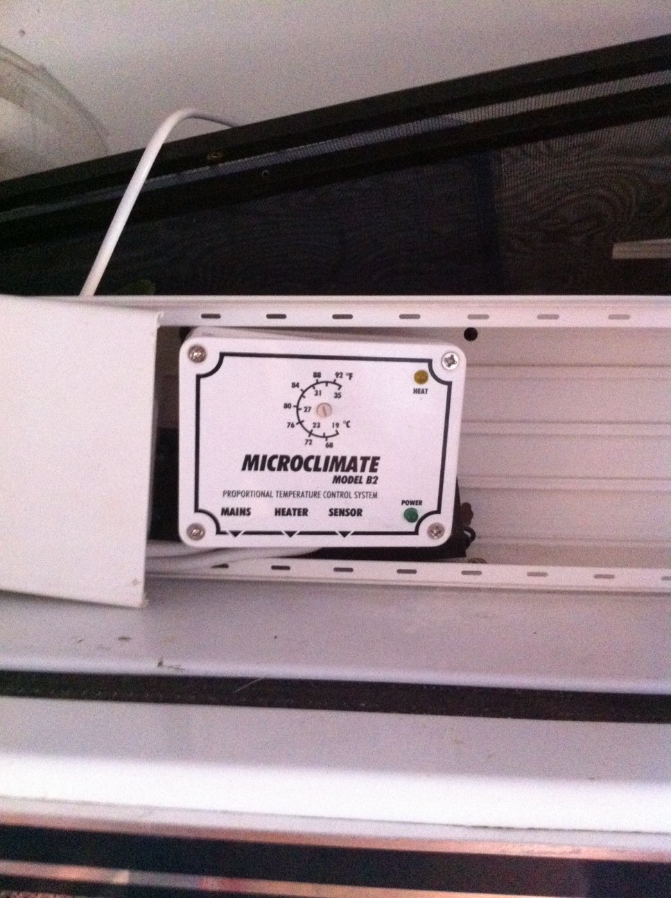 Aquí está funcionando calefacción inferior, superior y humiificador, y está visualizandose la temperatura de la sonda 4 en el termómetro. (aclarar que la temperatura no está estable por que no ha pasado ni un minuto desde que se ha encendido la incubadora para las fotos).