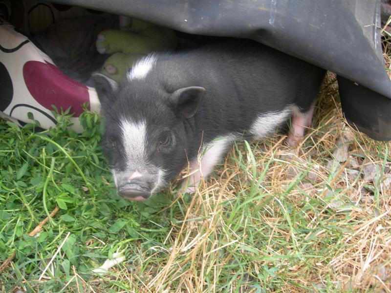 Se llama Taca (Mancha en catalan), es una cerdita vietnamita y tiene un mes y una semana