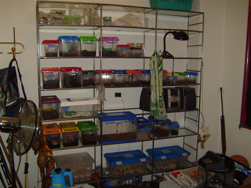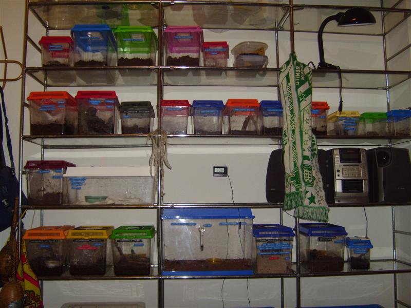buenass este es mi cuarto donde tengo la tarantulas,escopriones, la lampro y la iguana, a aprte de comida viva como: cucas,tenebrio,drosophila etc...